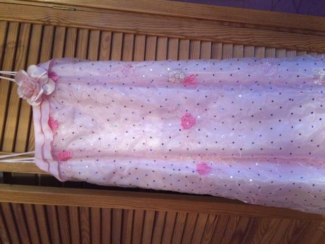 Ant 152cm, labai graži, puošni suknelė. Dėvėta tik vieną kartą. Mainai nedomina, galima derėti dėl kainos.