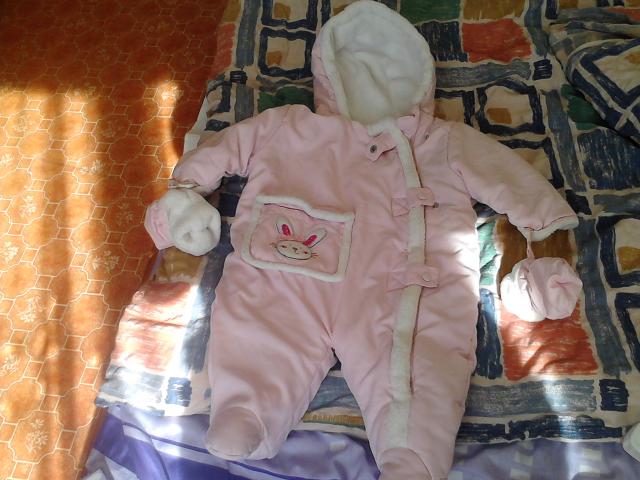 vaikiskas rausvas kombinezonas su pirstinemis,siltas,mazai devetas be jokiu defektu,labai grazus.jei riekia daugiau info rasykit