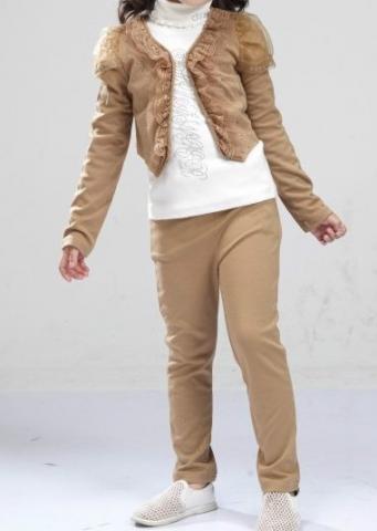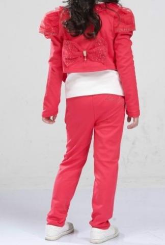 Trys spalvos. Trijų dalių. Išmatavimai: 110 dydis: marškinėliai: ilgis 38cm, biustas 62cm, rankovės 37cm. kelnės: ilgis 58cm. 120 dydis: marškinėliai: ilgis 41cm, biustas 65cm, rankovės 39cm. kelnės: ilgis 60cm. 130 dydis: marškinėliai: ilgis 44cm, biustas 69cm, rankovės 41cm. kelnės: ilgis 62cm. 140 dydis: marškinėliai: ilgis 47cm, biustas 72cm, rankovės 43cm. kelnės: ilgis 64cm. Medžiaga: medvilnė.
