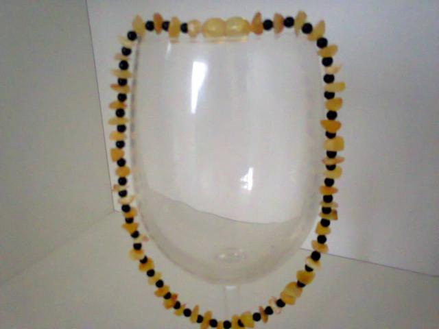 Karoliukai suverti ant patvaraus dvigubo siulo,uzsegimas uzsukamas. Suverti is sviesaus baltisko gintaro +tamsus karoliukai. Kaina su reg.siuntimu 13lt