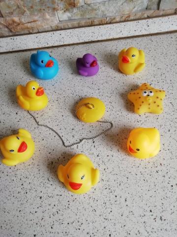 Vaikiški vonios žaislai: ančiukai ir kamštukas (už visus 3€)