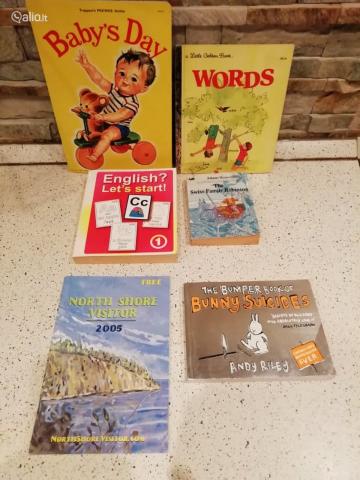 Total Hotties annual 2009 3€, Alesha Her Story-The Unauthorized Biography 2009m.6€, Paris Hilton.Confessions of an Heiress 2004m.8€, Heidi Klum's body of knowledge 8€, The final hour 3€, A Life on the Wire (Al Pacino) 2€, Alfred Nobel 1,50€, The global spirit of the feeling mind 6€, The Shoemaker and his daughter 3€, The life and Times of the Thunderbolt Kid 3€, French Children Don't Throw food 2€, Art Science of nail technology 6€, I' ll be waiting 1€, Acquaintance with Lithuania 4€,