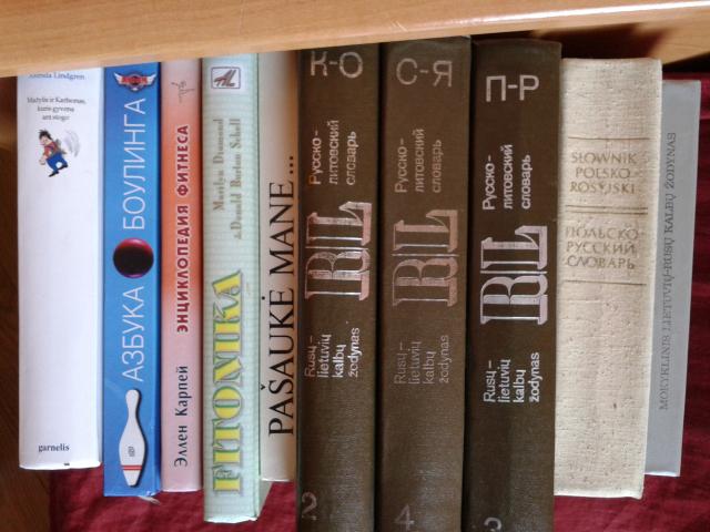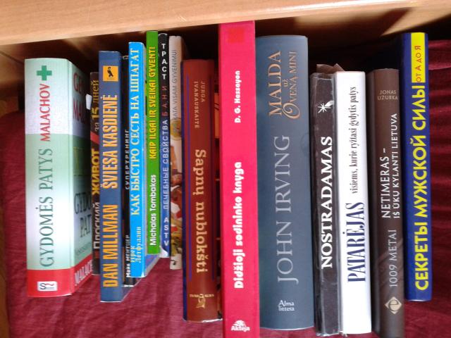Įvairios knygos. Grožinės, sveikatos tematika, naminių gyvūnų auginimo tematika, kultūrizmo ir raumenų auginimo tematika( lietuvių ir rusų kalbomis). Nevisos knygos nuotraukose. Dėl kainos prašome klausti.