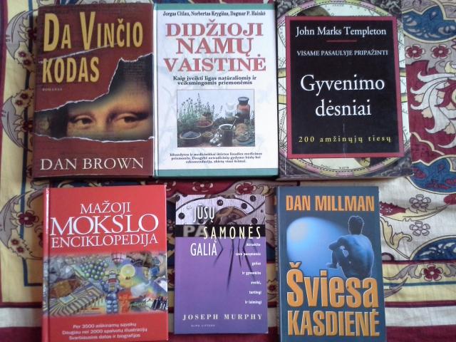 Daugelio stovis idealus. Knygos - kultūrizmo, sveikatos (masažas, sveika gyvensena), naminių gyvūnų auginimo (šuniuko, aviganio, kačių, papūgėlių), dvasinio tobulėjimo tematika (Ošo meditacija, Karnegis), kitos - skirtos vaikams/paaugliams (A. Lindgren "Mažylis ir Karlsonas"). Yra daug kalbų mokymuisi (anglų k., italų k., vokiečių k., čekų k., turkų k.) skirtų knygų, žodynų.