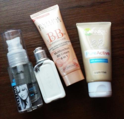 1. Joanna styling effect plaukų aliejukas 30ml. Nunaudota tik trečdalis, gal net mažiau. Galioja iki 2017 03 2. Loccitane verbena kūno losijono mėginukas 30ml, nebandytas tik tiek, kad kamštelis keliose vietose įbrėžtas. 3. Eveline BB kremas 6in1. 50ml Likę daugiau nei pusę. 4. Garnier BB kremas. 50ml, likę kažkur apie pusę. Domina mainai į kitas kosmetikos priemones.