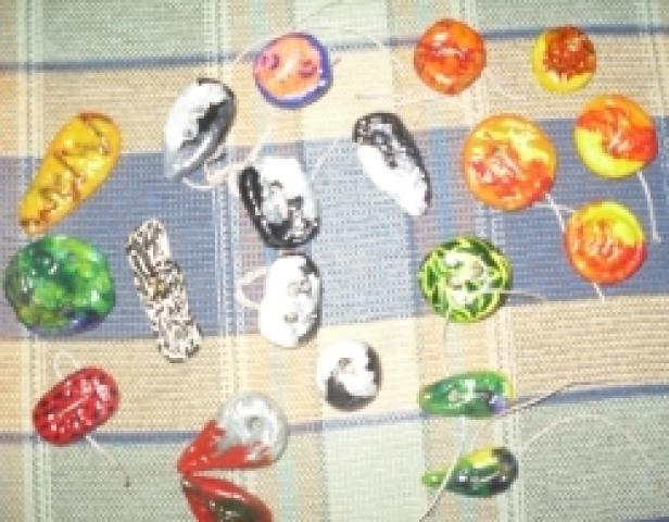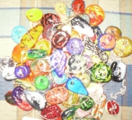 Įvairios spalvotos rankų darbo sagos ,pakabukai.