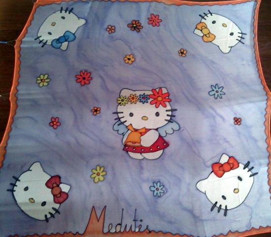 Rankų darbo. Galima nutapyti ir pagal pageidaujamą personažą. 55x55cm, 100proc. šilkas. 33Lt