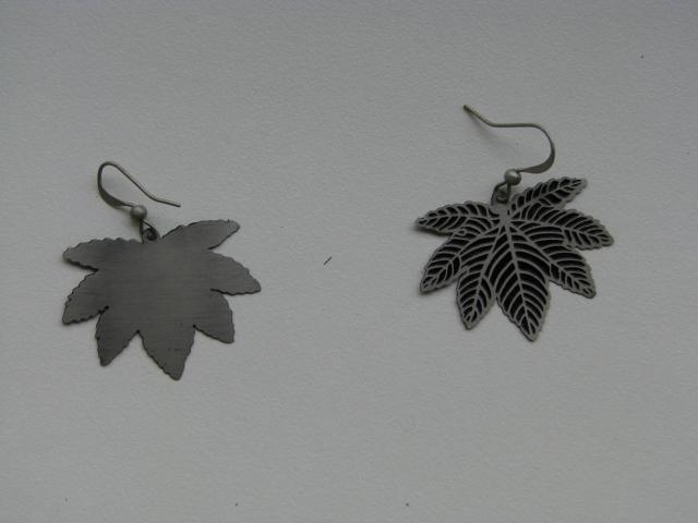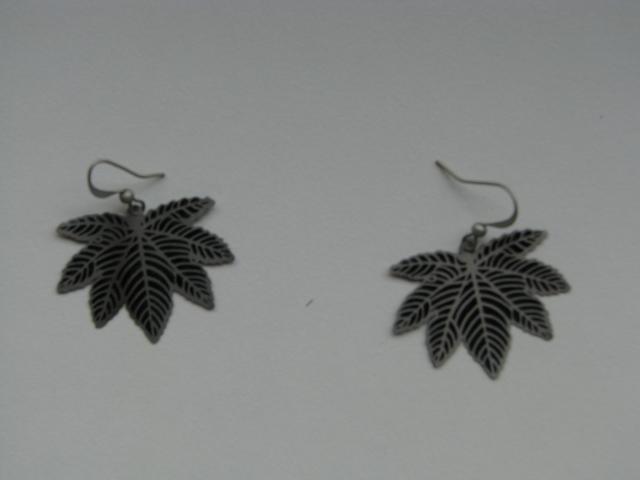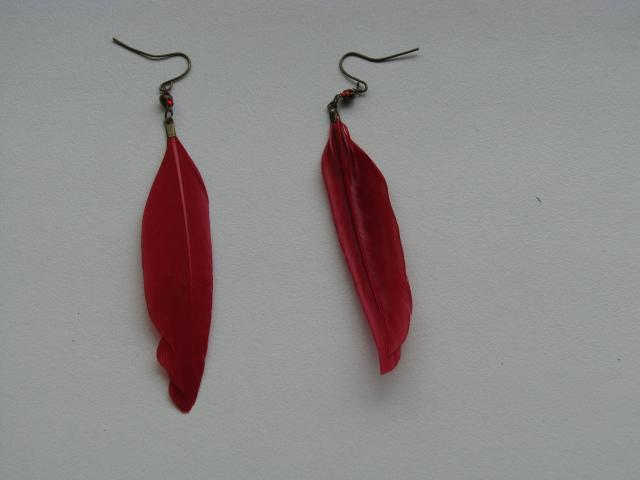 1. Raudoni auskarai - plunksnos, turi po mažą deimančiuką po asele, pirkta Sepalloje, nė karto nedėvėta. 5 lt. 2. Metaliniai kanapės lapo formos auskarai, viena pusė lygi, kita išraižyta. Pirkta Fashion zone, nė karto nedėvėta. 10 lt. 3. Balti kabantys stikliniai auskarai. Pirkti second hand'e . 5 lt.