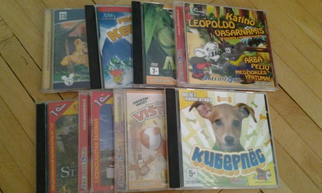 6 žaidimai, daugiausiai tinkantys vaikams, kaikurių žaidimų dėklai yra subraižyti ar aplūžę