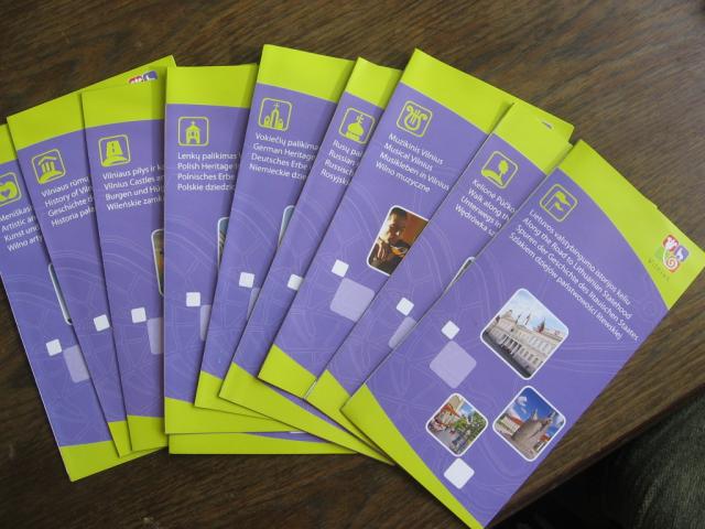 Lankstinukai su pieštu žemėlapiu ir aprašymais lietuvių, lenkų, vokiečių ir anglų kalbomis Lankstinukai: kelionė Pūčkorių taku; Lietuvos valstybingumo istorijos keliu; muzikinis Vilnius; rusų palikimas Vilniuje; vokiečių palikimas Vilniuje; lenkų palikimas Vilniuje; žydų palikimas Vilniuje; Vilniaus pilys ir kalvos; Vilniaus rūmų istorija; meniškasis ir romantiškasis Vilnius