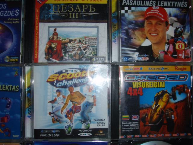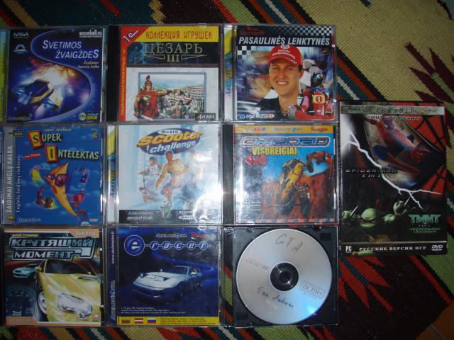 Įvairūs linksmi PC žaidimukai:) ir su mašinom lenktyniauti. Senienos, galiu mainyti ar parduoti už 10eu visus