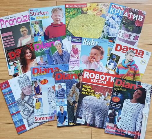 Įvairūs mezgimo žurnalai - yra ir vaikams, ir suaugusiems, ir apranga, ir rankdarbiai namams. Mezginių schemos, aprašymai. Kalbos - lietuvių, vokiečių, lenkų. (Nuotraukoje matomo žurnalo "Rankdarbių kraitelė" nebėra). Galima mainyti / įsigyti ir po vieną žurnalą.