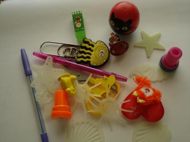 1 foto tamsoje šviečiančios kriauklytės, antspaudai, tušinukai.. 2 foto lipnios boružėlės 3 foto segtukas-segė Naujas