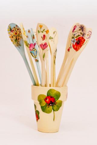 Įvairūs dekoruoti mediniai dirbinėliai :) dekoruoti dekupažo technika, lakuoti. Galima keistis, pirkti ir mainyti įvairius kiekius. Konkrečios kainos nėra, siūlykite.