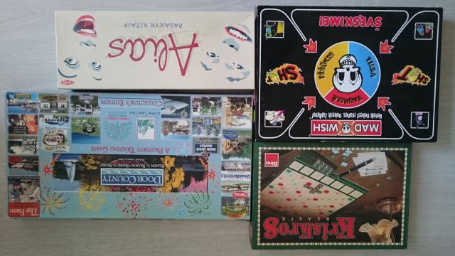 Parduodu įvairius stalo žaidimus. Alias 6 eur Madwish 14 eur - parduotas KrisKros 4 eur Door County Property Trading Game 9 eur (Monopolio principas)
