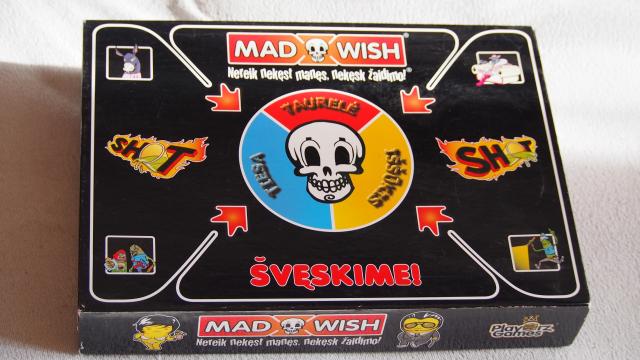 Parduodu šiuos stalo žaidimus: Madwish - 16 Eur (vakarėlių stalo žaidimas) - parduotas Them and us - 3 Eur (komandinis žaidimai - vyrai prieš moteris) Trivial Pursuit - 6 Eur (pažintinis klausimų žaidimas) Anima: Shadow of omega - 6 Eur (fantasy stiliaus kortų žaidimas) Red Herring - 3 Eur (Klausimų žaidimas: reikia atspėti, kuris atsakymas teisingas, o kuris pramanytas). Madwish lietuviškas, kiti žaidimai angliški. Daugiausiai žaista su madwish, kiti žaidimai praktiškai visiškai nauji. Yra visos d