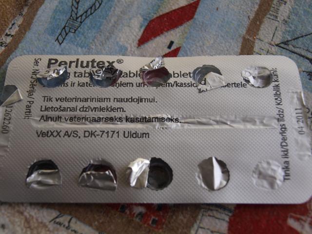 Vaistai nuo morčiaus "Perlutex". Liko pusantros tabletos, visiškai užtektų vienam morčiui.