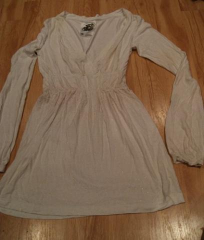 Labai gražiai aptempta, balta ir su auksiniu blizgesiu, po krūtine paraukta todėl puikiai atrodys su diržu. Medžiaga labai maloni.