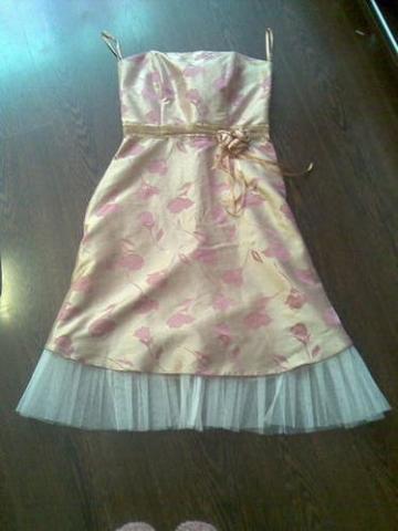 Auksinrs spalvos su ruzavom rozytem iseigine suknele. Labai graziai mergaitiskai atrodo. Dydis - 38
