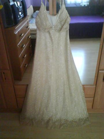 Laaaabai grazi, bet mainau, nes man per krutine mazoka. Sukneles dydis s/m, suknele iki zemes, visa is neriniu, tik apacioje yra pamusalas, ant sleikuciu, bet ju cia kazkodel nesimato,nesiota tik viena karta :)