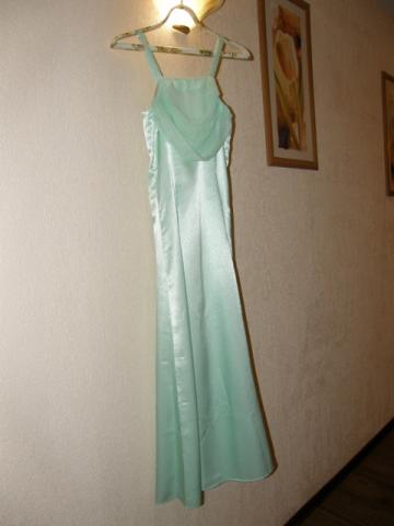 Pagal individualų užsakymą pasiūta vienetinė proginė suknelę. Dydis:36.Užsidėta pora kartų. Ilga, paryškinanti taliją, krūtinę, apnuoginanti pečius. Suknelės medžiaga švelni, lengvai krentanti. Ilgis-140cm, krūtinė-40*2cm, talija-37*2cm. Yra lengvas šalis.Labai pigiai atiduodu, nes man jau per maža:(