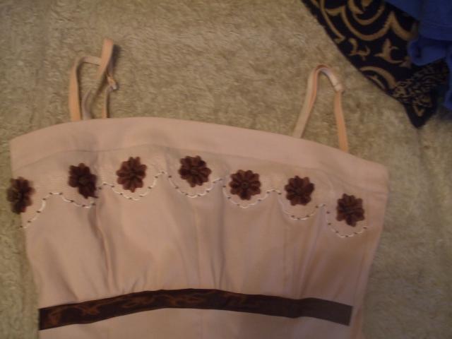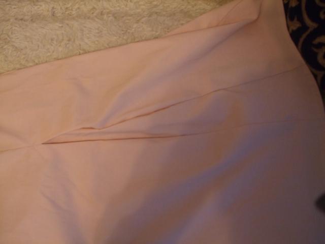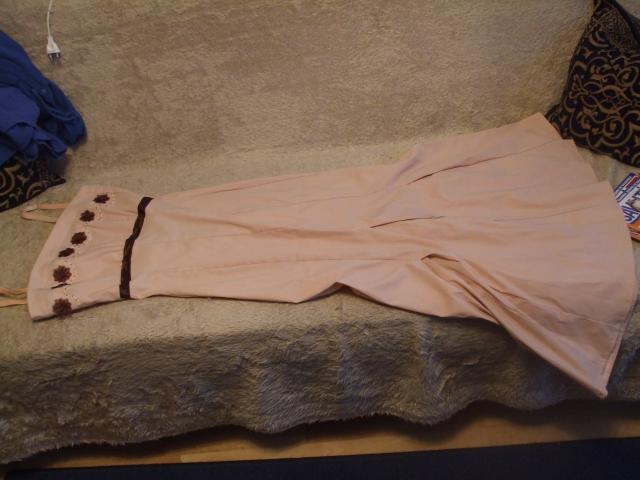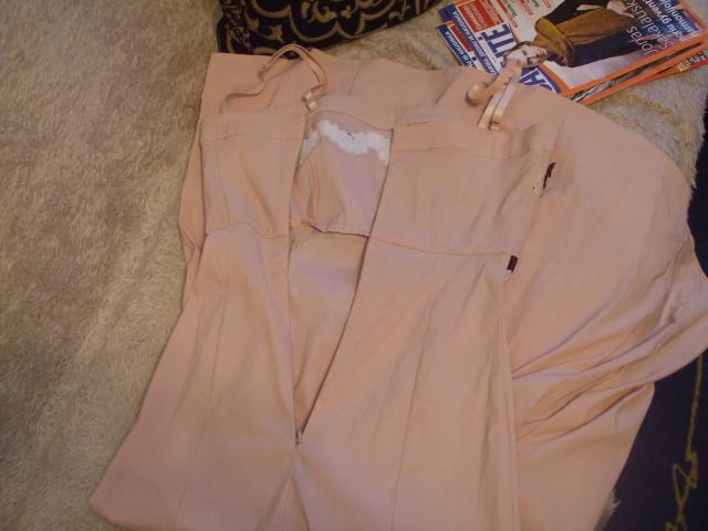 Kūno spalvos, ilga, į galus platėjanti. Visa aptempta. Per nugarą užtrauktukas.