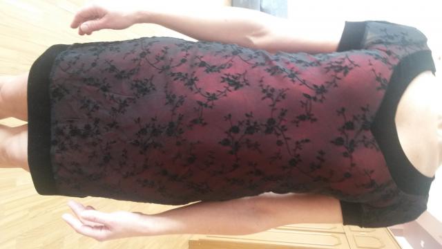 Vakarinė suknelė, labai geros būklės, dėvėta kelis kartus. Iš dviejų sluoksnių - viršutinis juodas, o apatinis persišviečia raudonas.Atsiprašome už nuotrauką.
