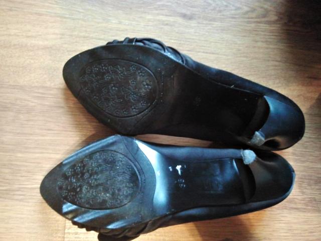 juodi elegantiski, viena kart uzsideti, bet man is kart nugrande. Dydis 38, bet labiau tikttu 37 1/2 - 38, nes priekis pakankamai kietas ir spaudzia. Be jokiu defektu, kaip minejau, tik viena karta uzsideti, kone nauji.
