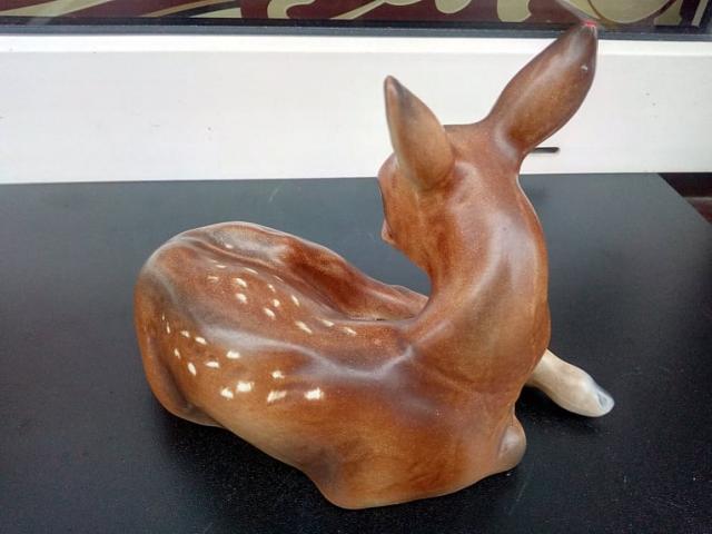 Vakarų Vokietijos porcelianinė statulėlė Gulinti stirnytė.