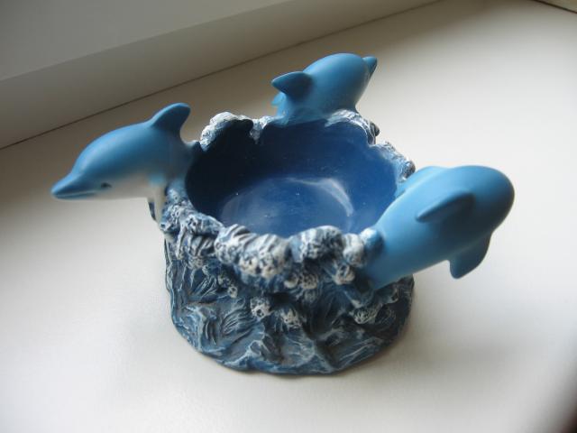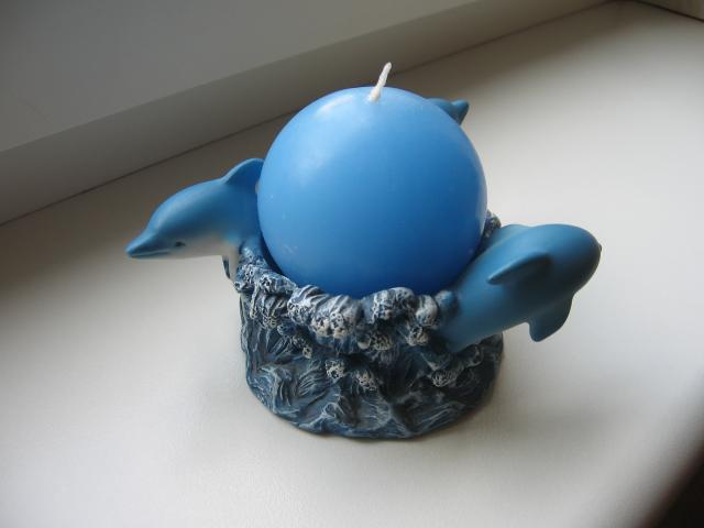 Žvakidė su delfinais, aukštis apie 6 cm. Mainau su žvake arba be jos.