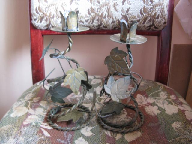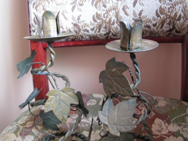 Dvi senos metalinės žvakidės, aukštis 21 ir 19 cm. Kaina abiejų.