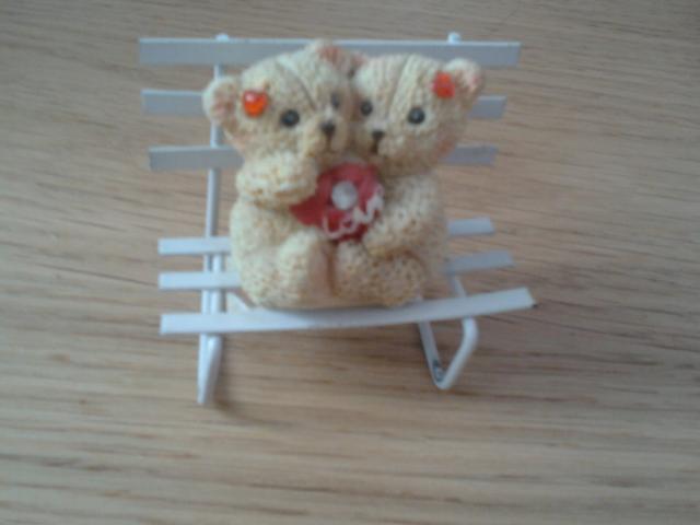 Miela statulėlė su meškučiais, laikančiais širdelę