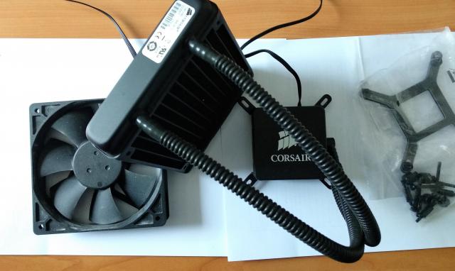 Procesoriaus (CPU) vandens aušintuvas Corsair H60 Visi elementai + tvirtinimas Intel platformai. Defektas - bilda, tarška vandens pompa.