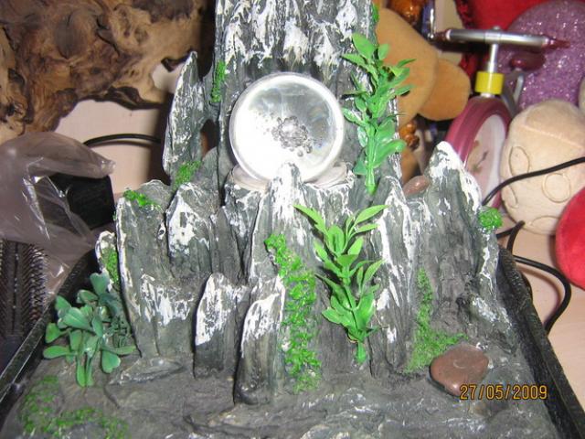 ijungus stiklo kamuoliukas sukasi ant vandens ir ziba yvairiom spalvom