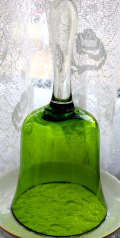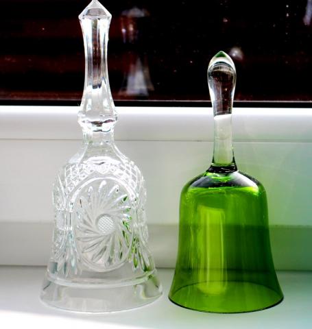 Krištolo ir skaidraus žalio stiklo varpeliai, kiekvienas po 5 eur.
