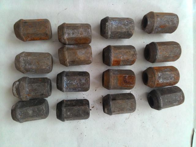 Varžtai ratlankiams M12x1,5 16 vnt. Praradę estetinę išvaizdą, bet kitais atžvilgiais be trūkumų. Sriegiai sveiki. Buvo naudojami ant Ford Focus ratlankių.