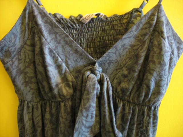 Labai trapi, kunui malonios medziagos, zalsvos spalvos su tamsiais rastais. Bet ne nauja. Pirkau isparduotuvej, uzsidejusi buvau karta.