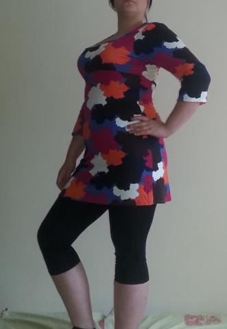 Labai patogi, smagiai nešiojasi, lengvai krentanti. Ilgis nuo peties ~ 90cm. krutinės apimtis ~ 90cm, Liemuo ~ 100cm. Labai lengvai tempiasi tiks tiek didesniai tik mažesniai. šypsena Gali būti nešiojama kaip tunika arba suknelė 2 in 1 šypsena)