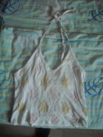 Vasarinė trumpa maikutė, užrišama ties kaklu. dydis kaip ir S, bet tiktų ir M, nes pati nešiojau.