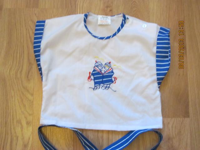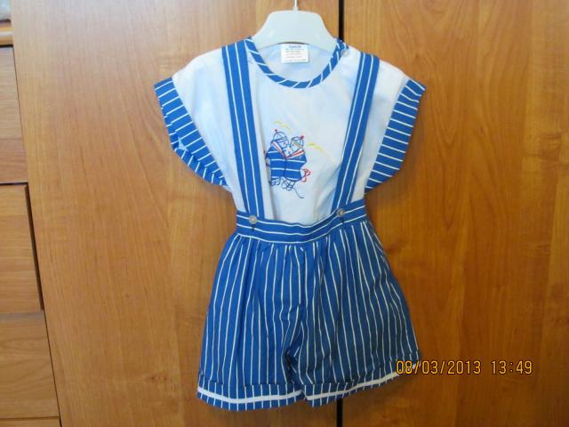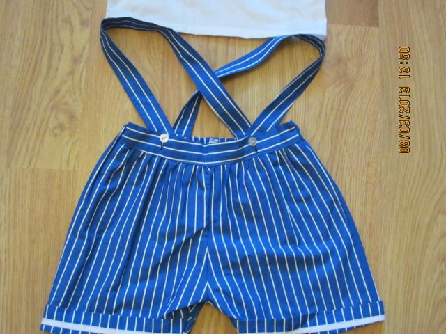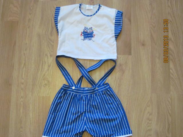 Labai gražus, jūrinis komplektėlis berniukui. Dydis 80 cm, tinka 12 mėn. Marškinėlių išmatavimai: plotis - 60 cm, ilgis - 28 cm; Šortų išmatavimai: plotis - 48 cm (dar yra gumutė), ilgis (be šleikučių) - 27 cm.
