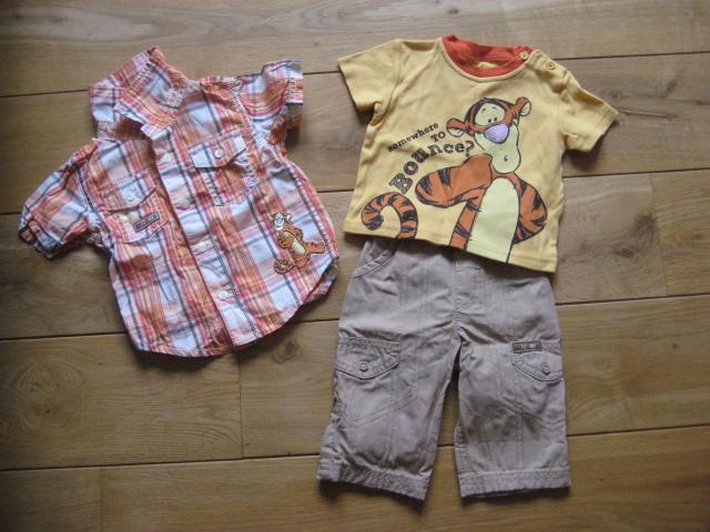 plonos kelnytės, marškinėliai ir marškiniai trumpomis rankovėmis su tigriuku jūsų stilingam kavalieriui :). Komplektukas vilkėtas tik kartelį ar du išeigai, tad galima sakyti, kad naujas.