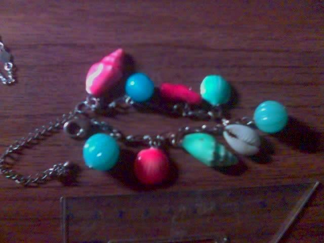 Vasariška metalinė apyrankė su spalvotomis kriauklytėmis.
