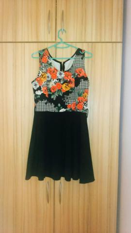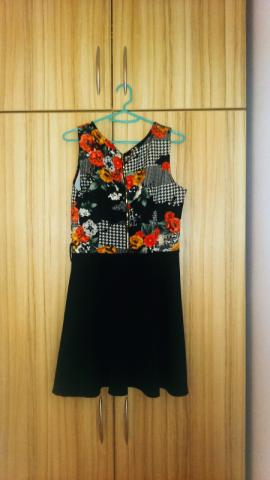 Visiškai nauja juoda gėlėta suknelė be rankovių, truputį virš kelių. Gale su užtrauktuko dekoracija. Išmatavimai: Per krūtinę : 90 Liemuo: 83 Ilgis: 86