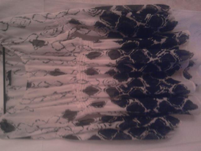 Per juosmenį suraukta, ilgomis rankovėmis. Gali būti nešiojama kaip tunika arba suknelė. Visiškai nauja. : ) Spalvos: juoda-balta.