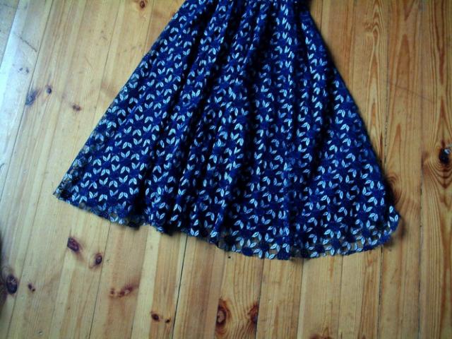Vasariška mėlyna suknelė. su baltais ornamentais