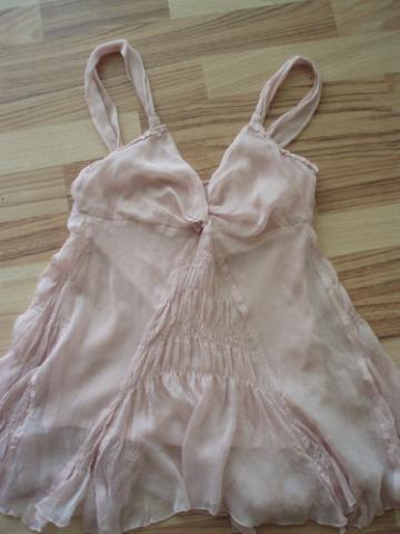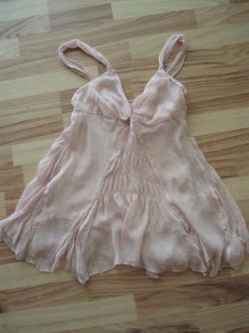 Šviesiai kreminės spalvos, nenešiota, nes didelė, yra pamušalas, todėl niekas nepersimato :D