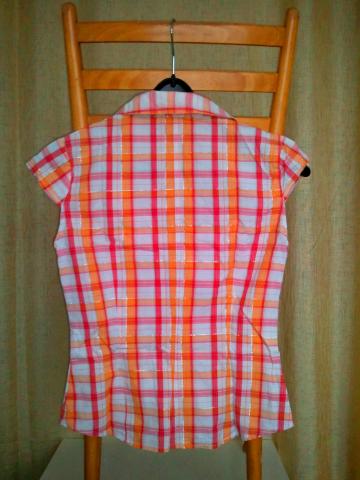 Languota, vasariška "H&M" palaidinė, parvežta iš Vokietijos, deja, man mažoka. Apsivilkta vos pora kartų. Gražiai išryškina liemenį. Tiktų smulkiai merginai. Sudėtis: medvilnė, metalikas
