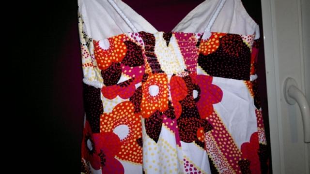 Trumputė suknytė, kuria galite nešioti ant šortukų ar tympų, nuostabių vasariškų spalvų, labai gražiai atrodo apsimovus, be jokiu defektų :) Gaila kad jin man jau mažoka :( Dydis S-M