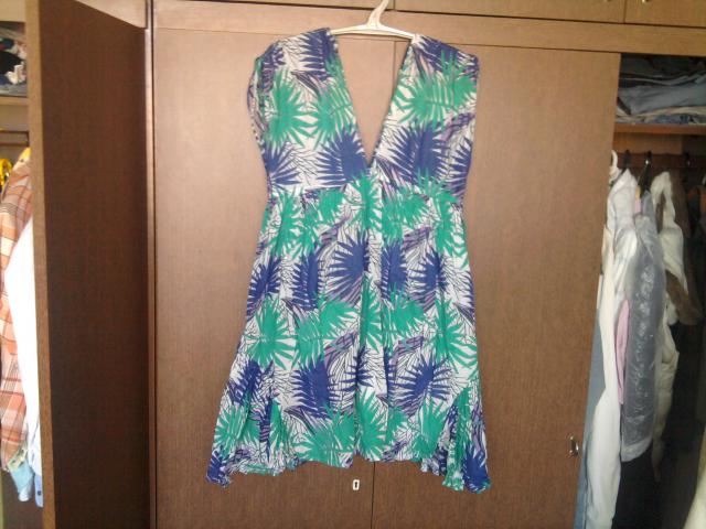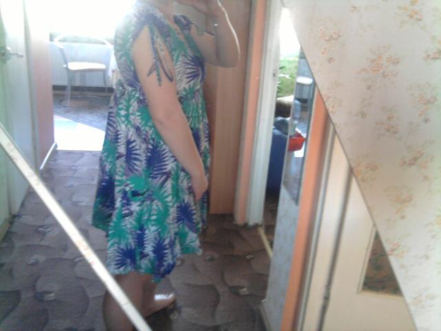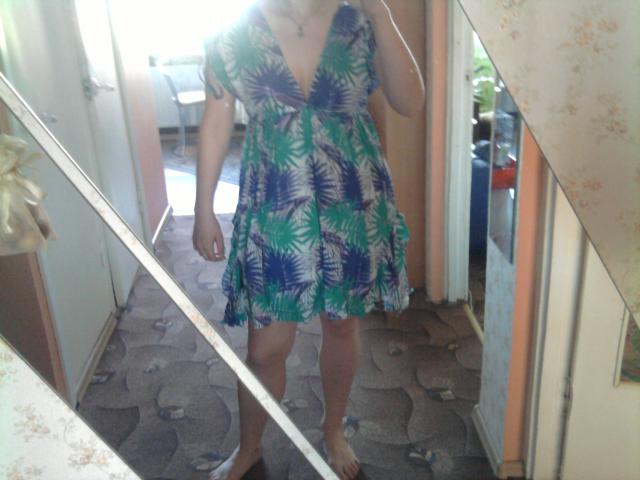 vos karta deveta suknele,ryskiu spalvu,maalonios medziagytes,laisvai krentanti.sonuose siek tiek platejanti ir su kisenukemis.galima deveti ir kaip tunika.ties peciais yra raisteliai,kuriais galima atleisti arba sutraukti medziaga.auskciau keliu,gilia iskirpte priekyje bei gale.viduje su pamusalu.dydi raso 12.po krutine yra gumyte,kuri tempiasi.be jokiu defektu