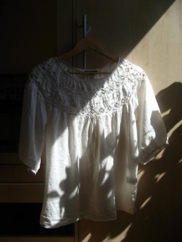 Dailių, šviesios spalvos marškinių, ar tunikos.